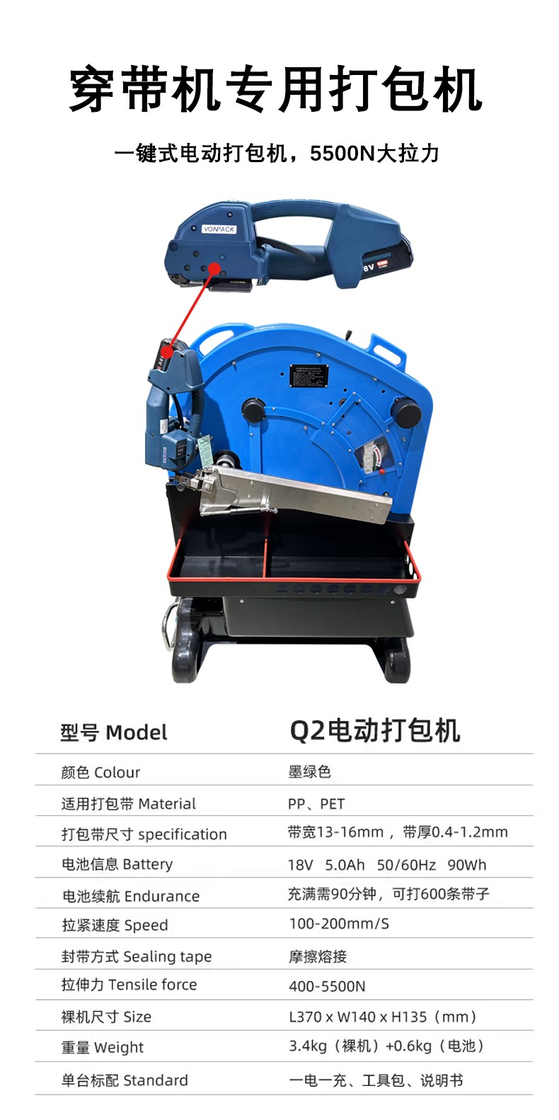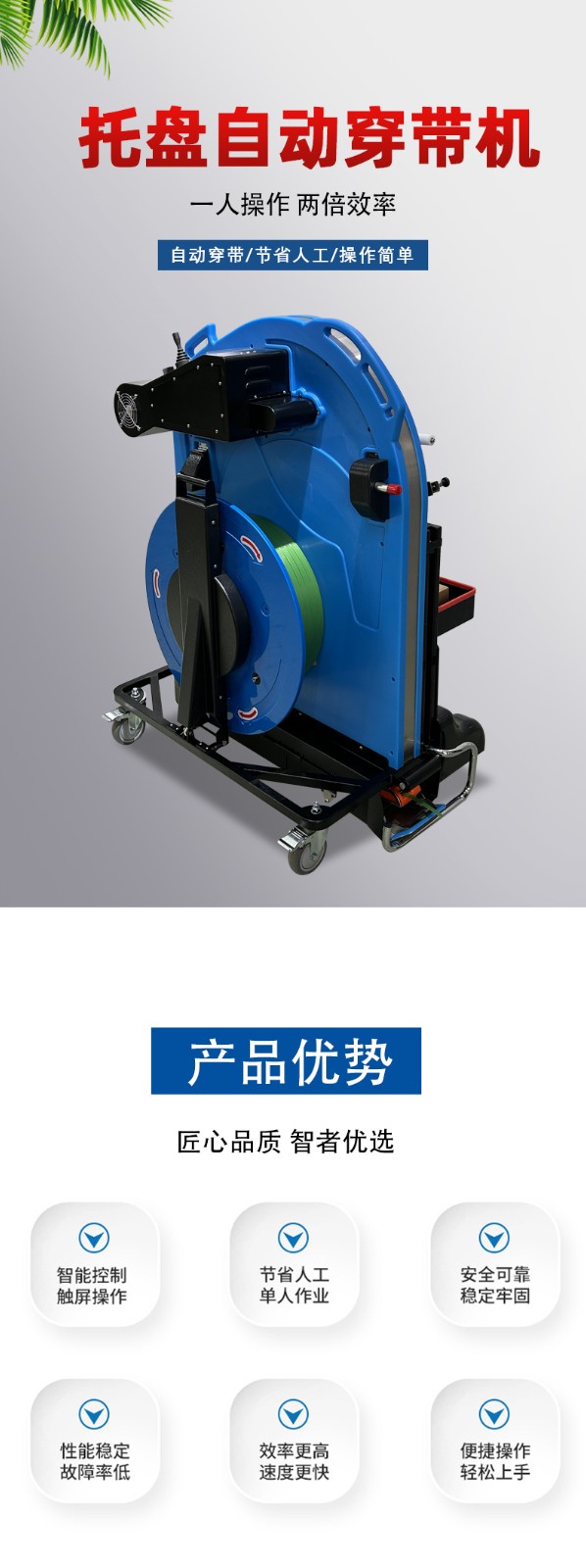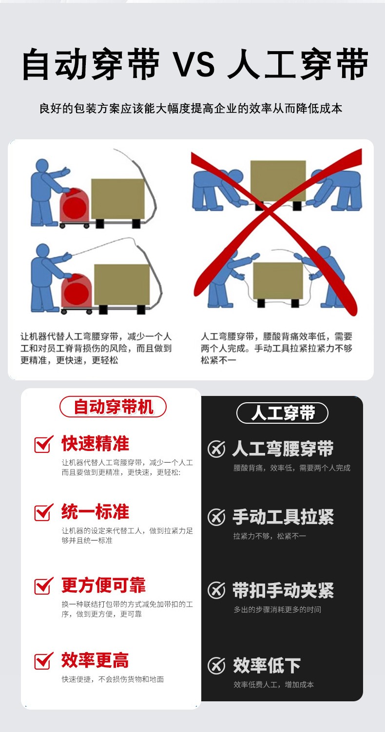 - 主要應(yīng)用在需要高效、精準(zhǔn)穿帶的場(chǎng)合。在大型自動(dòng)化包裝生產(chǎn)線中,穿帶機(jī)與打包機(jī)等設(shè)備配合,確保包裝帶準(zhǔn)確地穿過產(chǎn)品或包裝結(jié)構(gòu)。