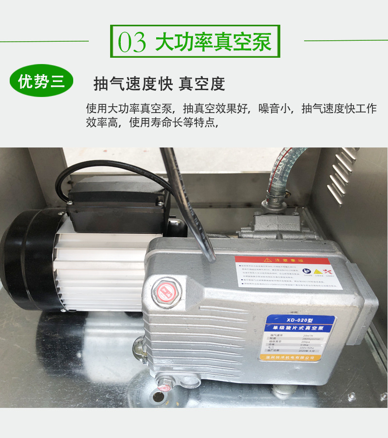 • 對真空泵的影響:環境溫度過高時,真空泵電機散熱困難,可能會導致電機過熱,使真空泵性能下降甚至出現故障,影響抽氣速度和真空度,進而降低包裝效率。而在低溫環境下,真空泵內的潤滑油黏度增大,流動性變差,會使真空泵的運行阻力增加,同樣會降低抽氣速度。