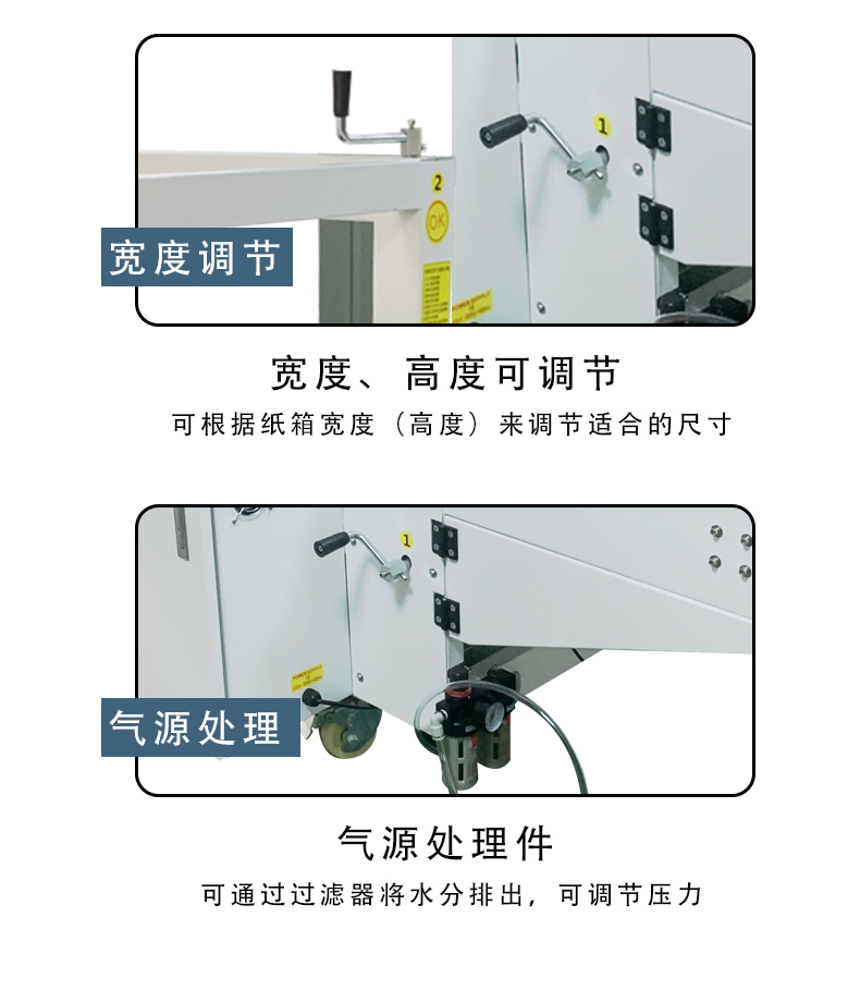 設備通過 PLC 程序精準控制每一步動作(如吸箱力度、折邊角度、膠帶粘貼壓力),確保所有紙箱的