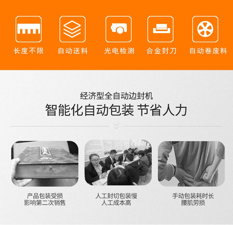 • 定制機型:針對長條或大尺寸產品(如鋁型材、相框),雖速度相對較低(每分鐘 10-30 件),但仍遠高于人工包裝效率。