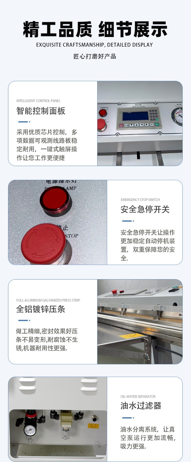 • 功能匹配:根據核心需求選擇集成功能,例如食品行業優先選 “真空 + 充氣 + 印字” 款,工業領域可側重 “真空 + 寬邊封口” 款。