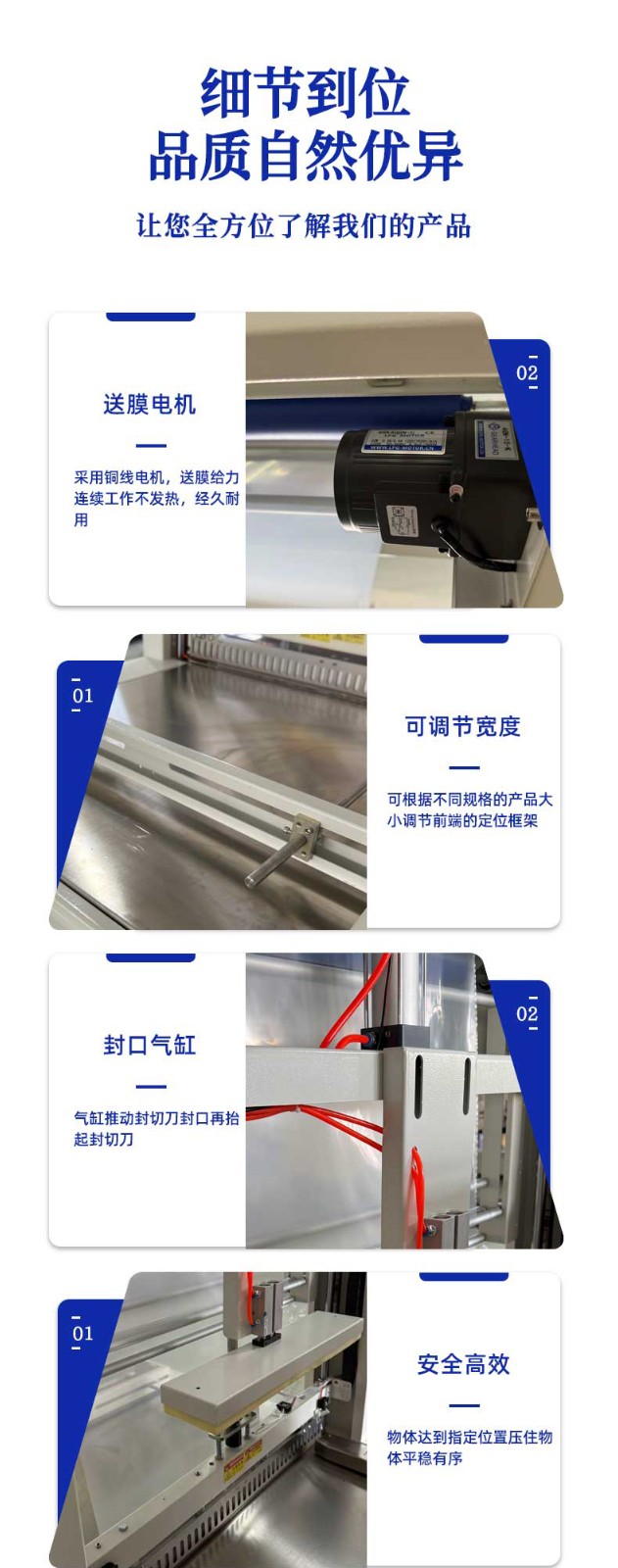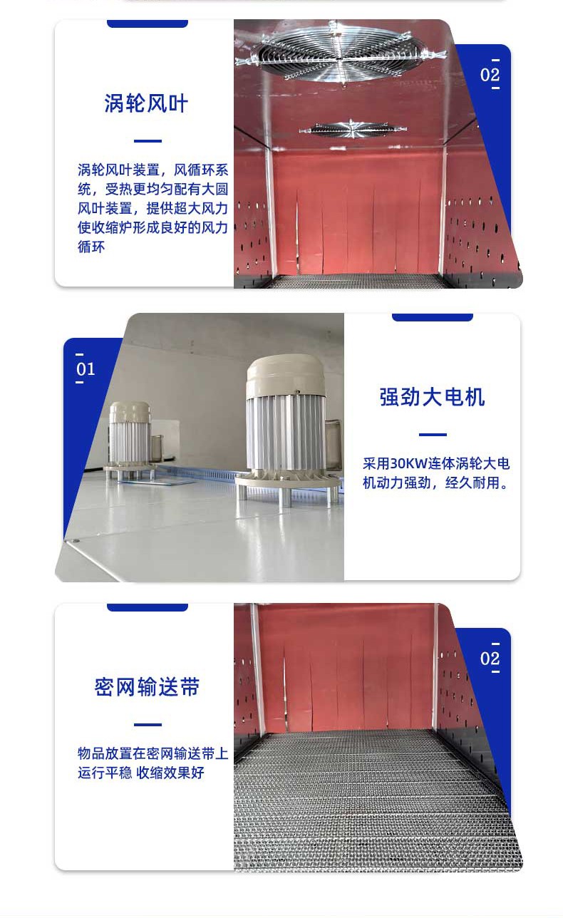 不同于傳統(tǒng)通用型包裝設(shè)備,袖口式熱收縮包裝機(jī)從設(shè)計(jì)源頭就瞄準(zhǔn) “瓶類產(chǎn)品組合包裝” 場景,徹底擺脫 “一機(jī)一用” 的局限。其針對瓶型包裝的特殊性,采用 “輸送帶 + 膜架 + 熱收縮通道” 的一體化結(jié)構(gòu):輸送帶可根據(jù)瓶身直徑、高度靈活調(diào)節(jié)寬度與輸送速度,無論是 500ml 的標(biāo)準(zhǔn)礦泉水瓶、1.2L 的果汁瓶,還是按壓式泵頭設(shè)計(jì)的洗手液瓶、帶提手的消毒液瓶,均能通過輸送帶平穩(wěn)輸送且不偏移;膜架部分配備自動張力控制系統(tǒng),可根據(jù)包裝膜厚度(常用 POF、PE 膜)精準(zhǔn)調(diào)節(jié)出膜力度,避免因膜張力不均導(dǎo)致的包裝褶皺或破損;熱收縮通道則采用分區(qū)加熱設(shè)計(jì),針對瓶身與組合間隙的不同熱收縮需求,實(shí)現(xiàn)均勻受熱,確保單瓶獨(dú)立包裝時(shí)膜面貼合瓶身,多瓶組合(如 2 瓶并排、4 瓶成箱、6 瓶堆疊)時(shí)膜體緊密包裹整體,杜絕 “局部收縮不到位” 的問題。