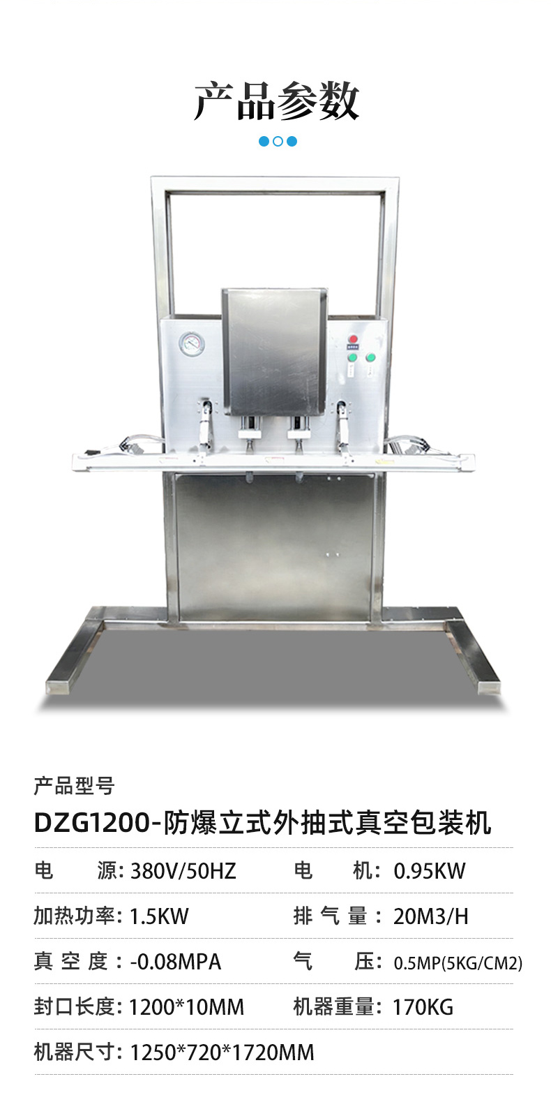 立式防爆真空包裝機的防爆配置集中在電氣、動力及密封過濾等關鍵部件,以此適配易燃易爆的特殊工況