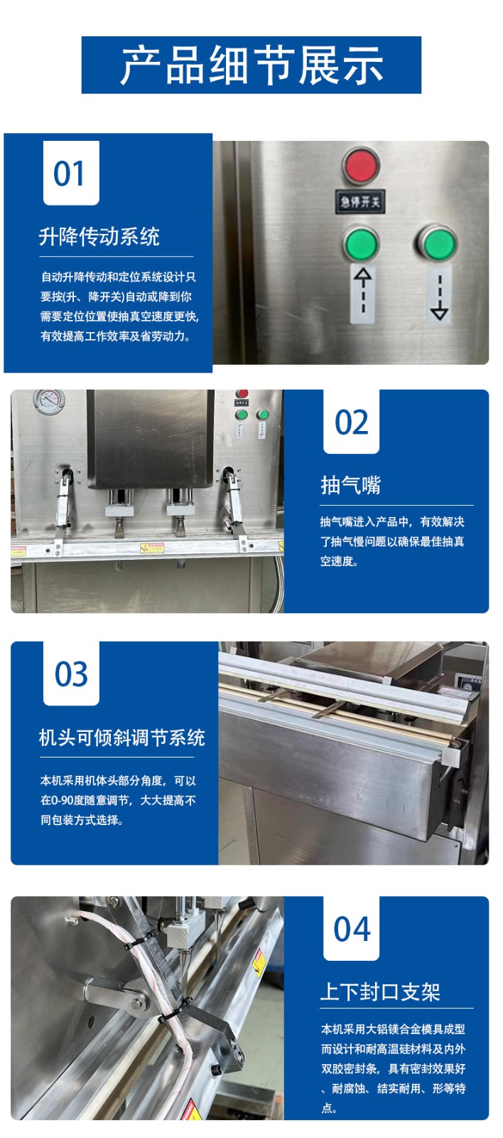 立式防爆真空包裝機的防爆配置集中在電氣、動力及密封過濾等關鍵部件,以此適配易燃易爆的特殊工況,其適用工廠也多為存在爆炸隱患的化工、醫藥等領域,具體如下: