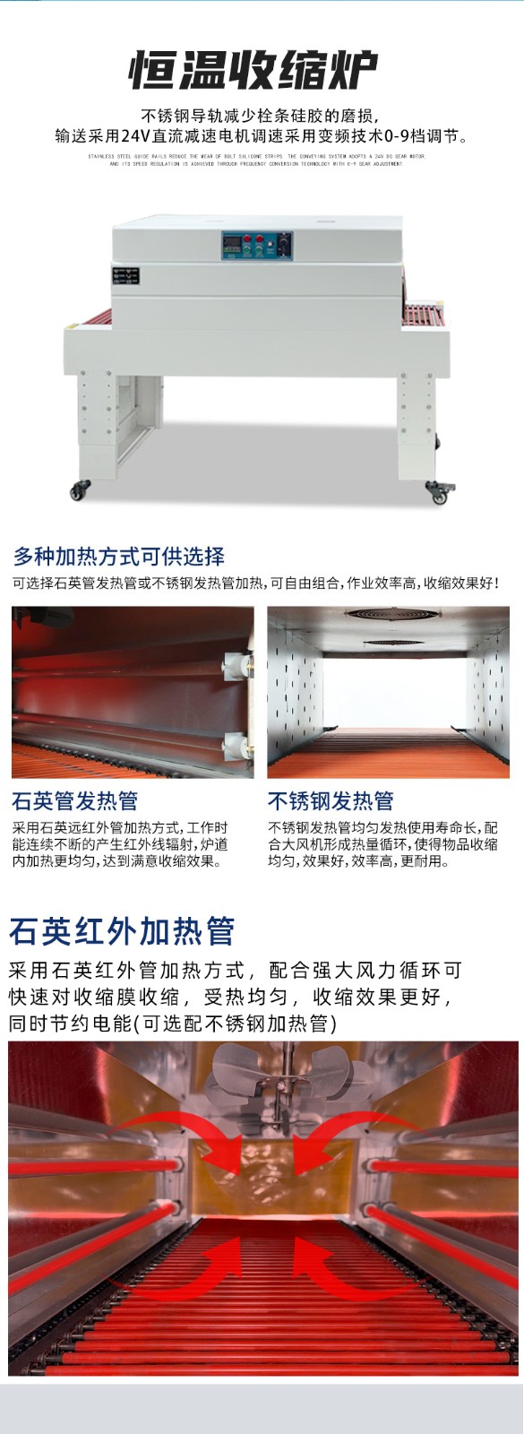 • 溫度控制精確:通常采用數顯溫控儀和進口熱敏感應控制,溫度可在 0-300℃范圍內調節,溫度控制精度可達 ±2℃,確保熱收縮效果穩定。