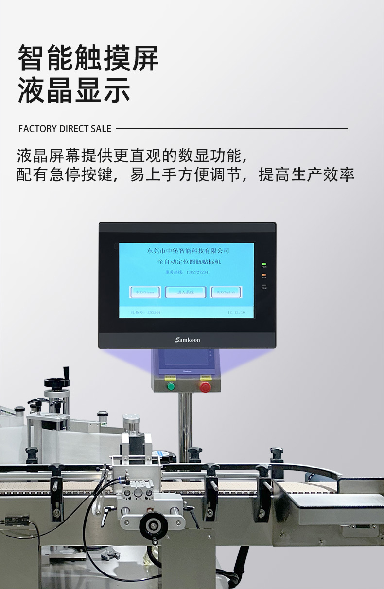 定位精準穩定:采用三點定位、伺服驅動與光電追蹤,可在圓周面指定位置貼標,正背雙標間距可調;滾壓機構確保標簽平整無氣泡,重合度高。
