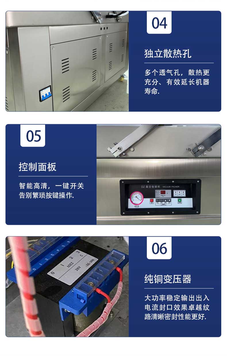 - 回氣與開蓋:當(dāng)達(dá)到設(shè)定熱封時(shí)間時(shí),熱封指示燈熄滅,真空室經(jīng)電磁閥進(jìn)入大氣,直至機(jī)蓋自動(dòng)抬啟,取出包裝好的產(chǎn)品,完成一次包裝循環(huán)。