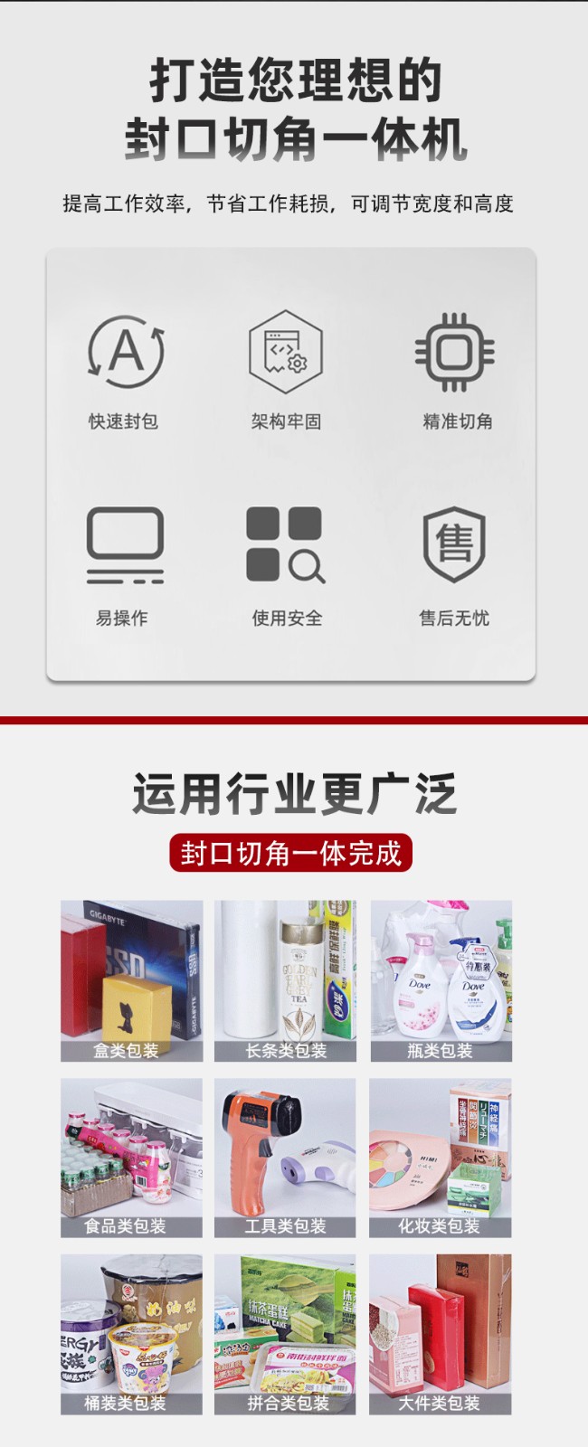 • 密封性:食品藥品包裝要求良好的密封性,以防止外界空氣、水分、微生物等進入包裝內部,影響產(chǎn)品質量和安全性。優(yōu)質的封口切角一體機通過精確控制封口溫度、時間和壓力等參數(shù),能夠使包裝材料之間形成牢固且密封的封口,有效阻止外界物質的侵入,滿足食品藥品包裝對密封性的要求。