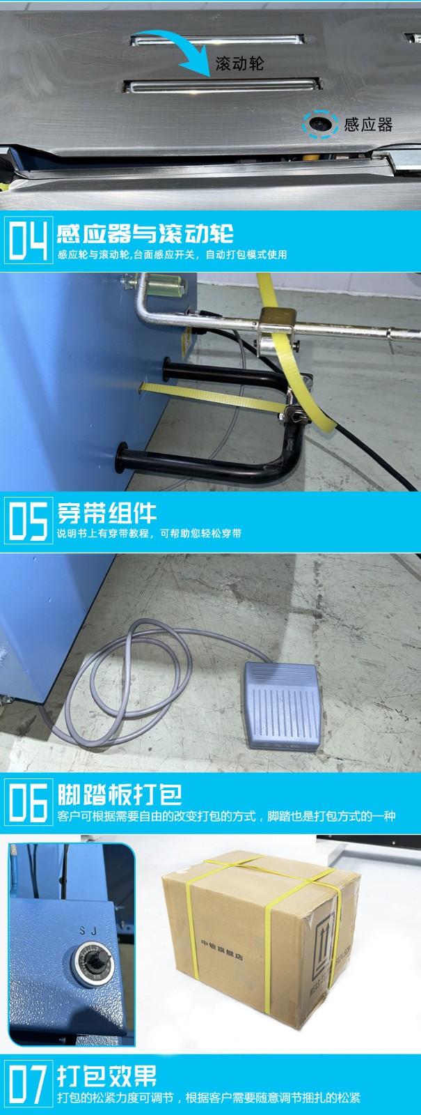 - 半自動打包機(jī):結(jié)構(gòu)相對簡單,價格較為便宜,適合預(yù)算有限、打包量不大的用戶。不過,由于需要人工參與部分操作,長期來看,人工成本可能相對較高。