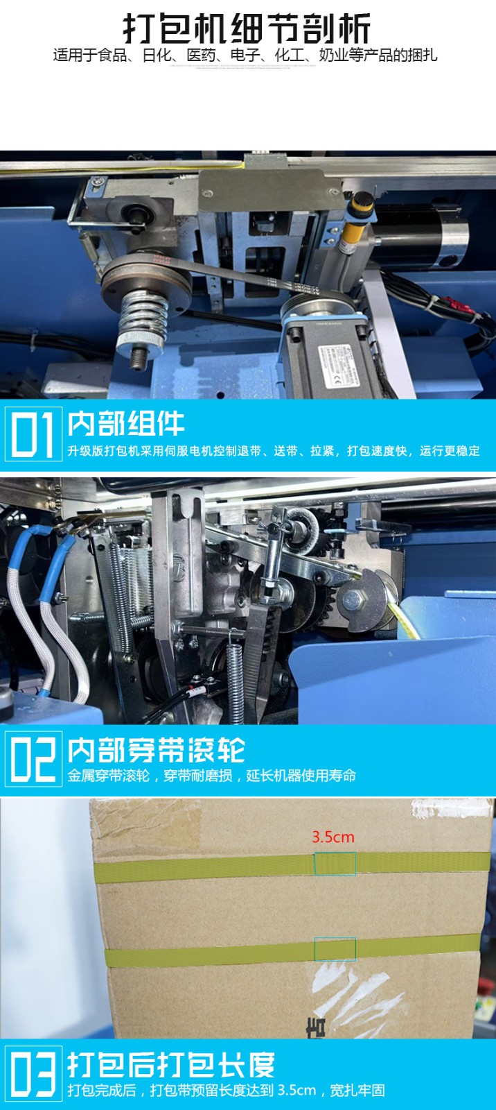 - 全自動打包機(jī):適用于各種大規(guī)模生產(chǎn)企業(yè)、物流配送中心、電商倉庫等,這些場所每天需要處理大量的打包任務(wù),對打包效率和一致性要求高,能夠充分發(fā)揮全自動打包機(jī)的優(yōu)勢,提高工作效率,降低人工成本。
