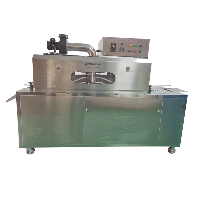 收縮階段:包裝好的產(chǎn)品接著被輸送到蒸汽收縮部分的收縮通道入口。此時,蒸汽發(fā)生系統(tǒng)已經(jīng)產(chǎn)生了合適的蒸汽,蒸汽通過噴頭均勻地噴灑在產(chǎn)品的包裝薄膜上。包裝薄膜在蒸汽的熱量作用下開始收縮,緊密貼合在產(chǎn)品表面。產(chǎn)品在輸送系統(tǒng)的推動下繼續(xù)在收縮通道內(nèi)移動,保證薄膜各個部分都能充分收縮。收縮完成后,通風(fēng)口排出蒸汽,產(chǎn)品在外界環(huán)境下冷卻定型,最終完成蒸汽收縮包裝,從出口輸送帶送出一體機。