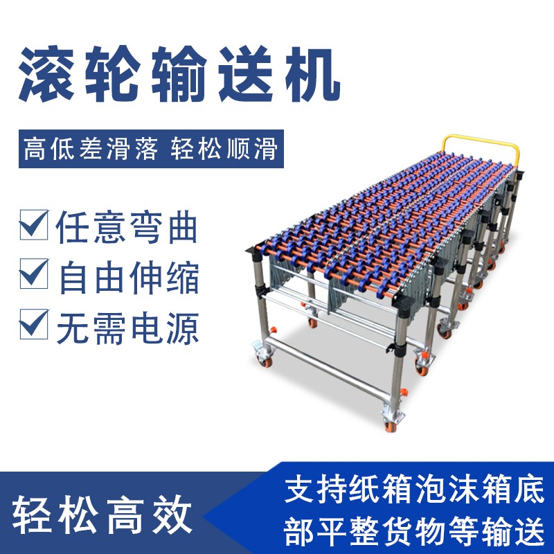 • 滾輪輸送機是一種利用滾輪的旋轉來輸送物品的設備。它可以分為無動力滾輪輸送機和動力式滾輪輸送機。無動力滾輪輸送機主要依靠物品的自重或外力推動,如人工推動,使物品在滾輪上移動。動力式滾輪輸送機則配備電機等動力裝置,通過傳動系統帶動滾輪旋轉,從而自動輸送物品。