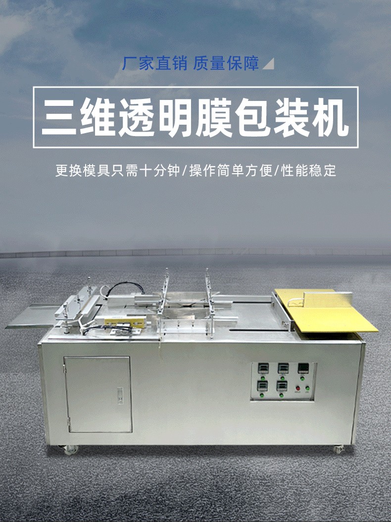設(shè)備通過 “膜料預(yù)處理→人工上料定位→三維裹膜成型→熱封切邊→折邊定型→成品輸出” 的流程,實(shí)現(xiàn)產(chǎn)品的立體包裝,具體步驟拆解如下: